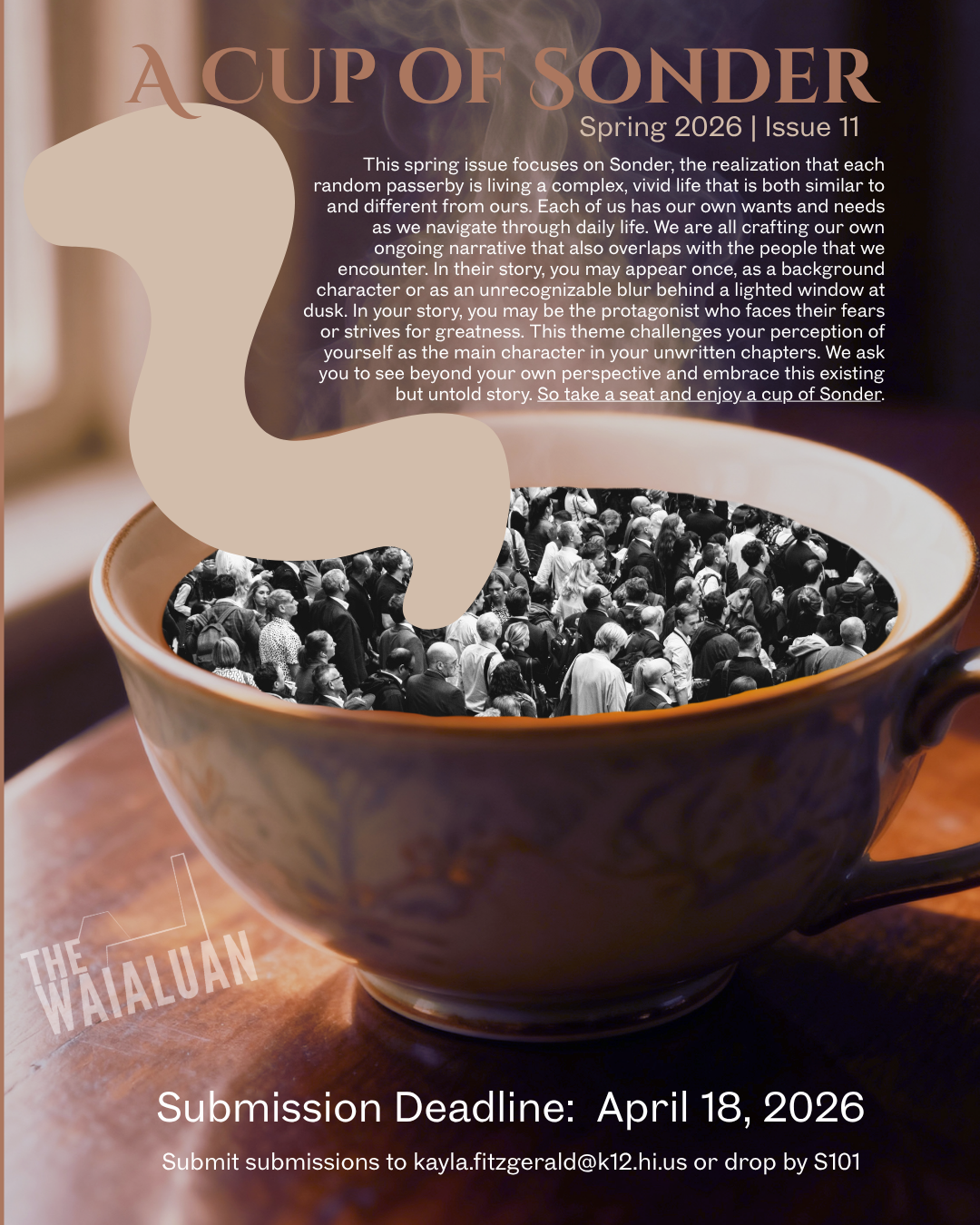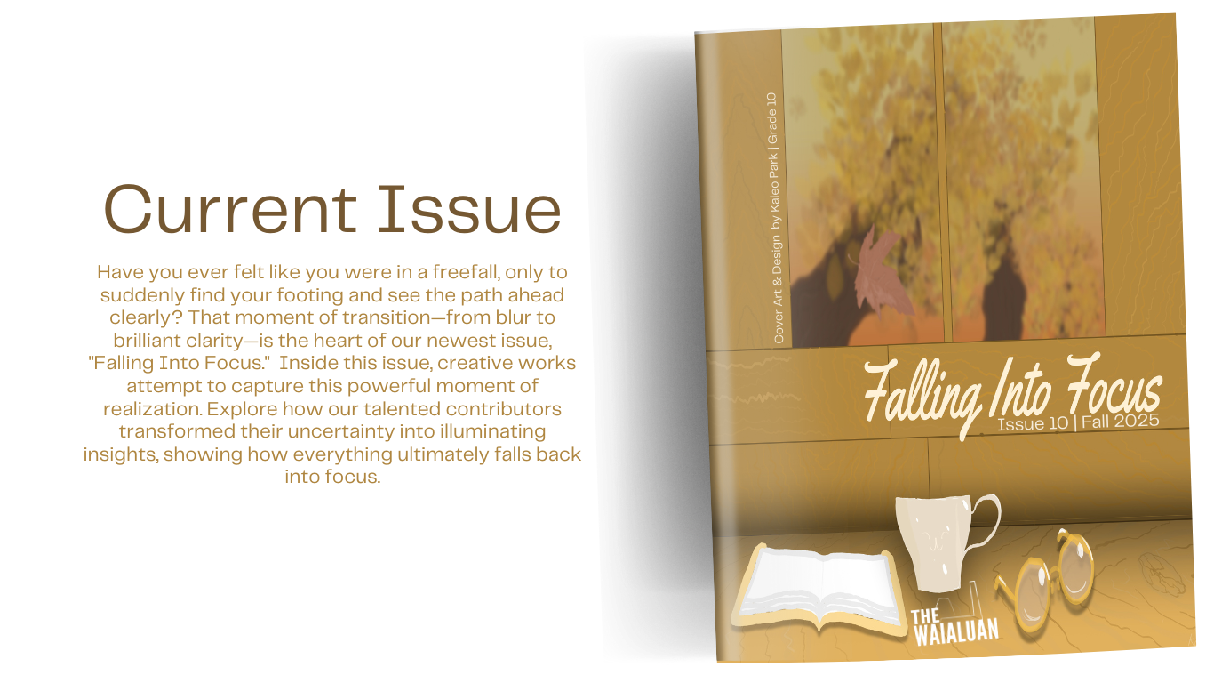 The Waialuan is a student-led publication, and our Waialuan student staff members are working hard to make The Waialuan the best high school literary magazine in Hawaii! Please help us grow our literacy and art community by following us on Instagram and submitting your work to our publication team!